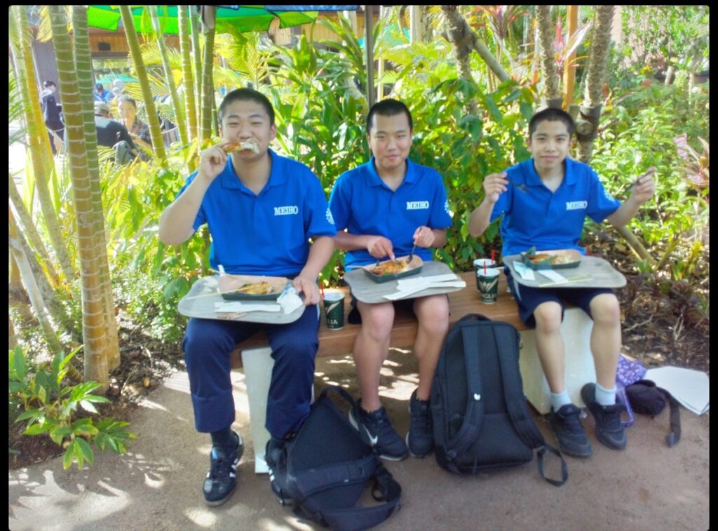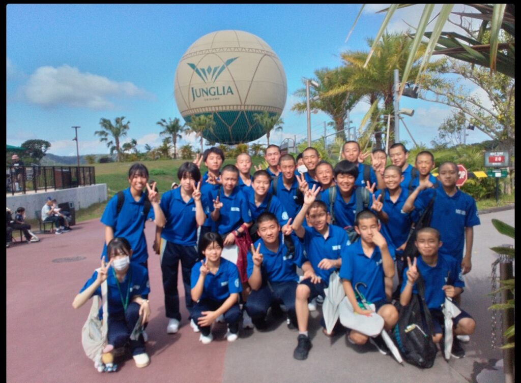 2025年11月06日 中学校 修学旅行2日目② 「ジャングリア」ではヤンバルクイナのショーで「大分の有名な食べ物は?」と聞かれて、「鳥天です!」と答え、会場が大爆笑になりました♪ ホテル到着後は近くのビーチで大撮影会。どんな写真が撮れたか楽しみです(^^)